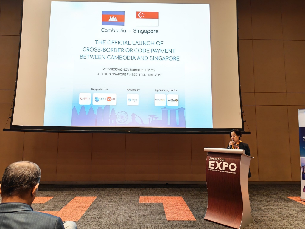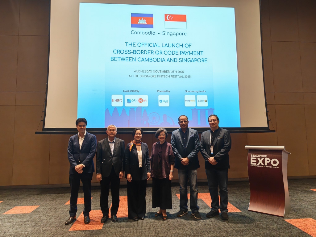 H.E. Dr. Chea Serey, Governor of the National Bank of Cambodia, presided over the official launch of cross-border QR code payment between Cambodia and Singapore Phase 1: “Cambodia scans QR Codes in Singapore”, on November 12, 2025 on the sidelines of the Singapore FinTech Festival 2025 in Singapore.