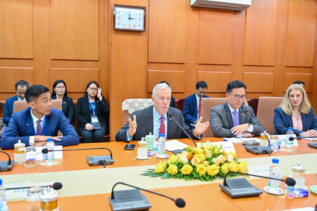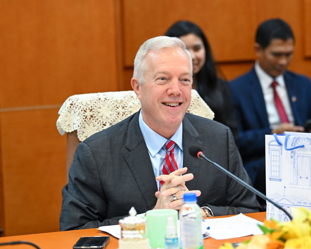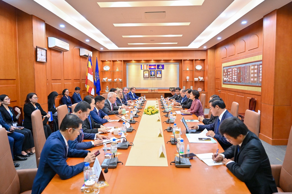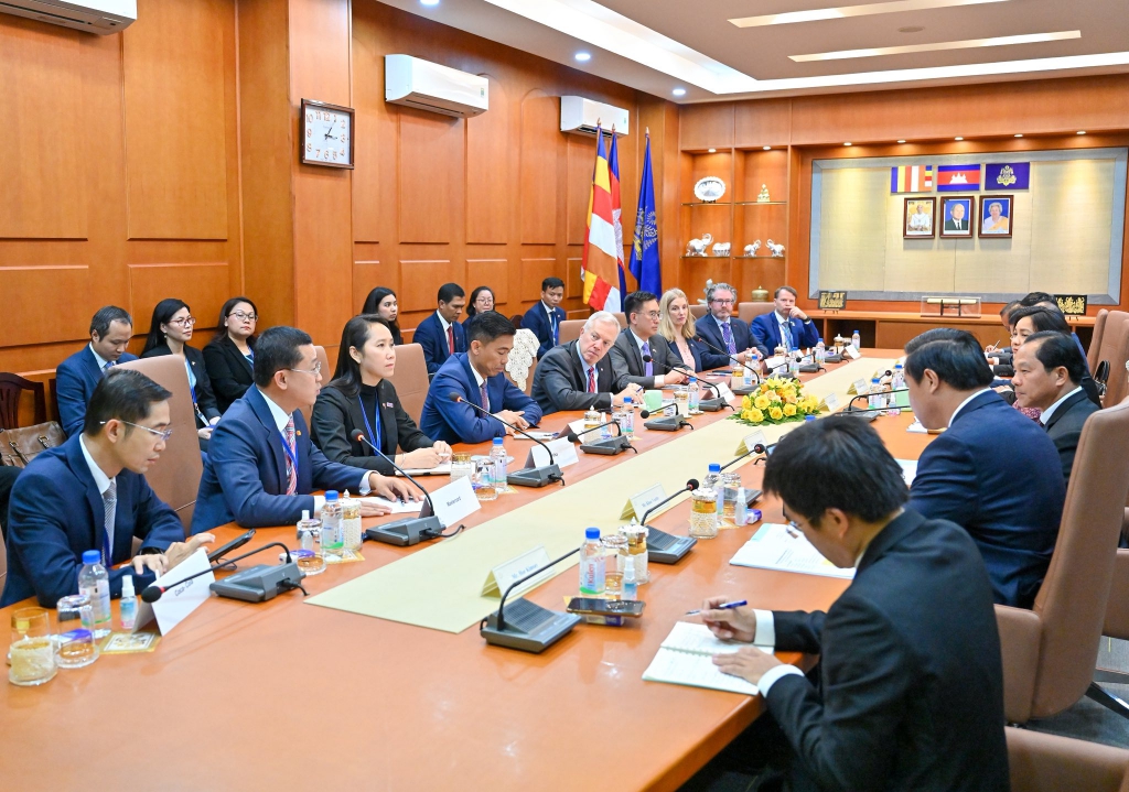 The delegation was led by H.E. Ted Osius, Senior Vice President and Regional Managing Director of US-ABC, accompanied by diplomatic representatives from the U.S. Embassy in Phnom Penh. The visit aimed to gain a deeper understanding of Cambodia’s economic progress and the potential for expanded investment in the financial sector, with a view to further strengthening bilateral cooperation.