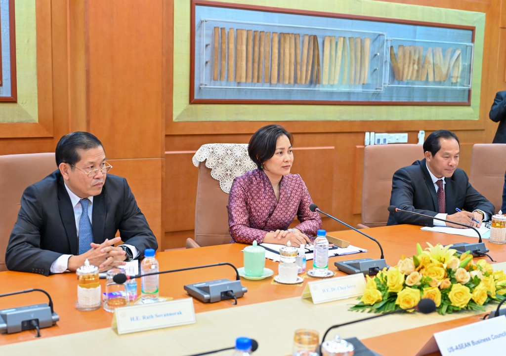 H.E. Dr. Chea Serey, Governor of the National Bank of Cambodia (NBC), received a delegation from the US-ASEAN Business Council (US-ABC) for a courtesy meeting on the afternoon of December 2, 2025, at the NBC headquarters.