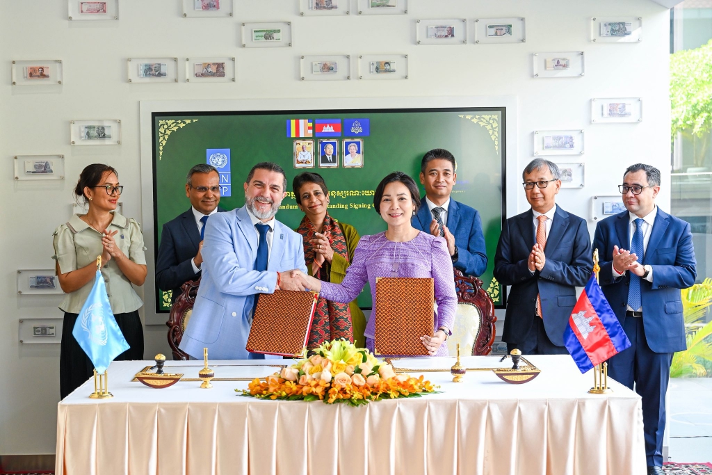 The National Bank of Cambodia (NBC) and the United Nations Development Programme (UNDP) in Cambodia signed a Memorandum of Understanding (MoU) on December 9, 2025 at the Preah Srey Içanavarman Museum (SOSORO) in the presence of H.E. Dr. Chea Serey, Governor of the National Bank of Cambodia, and Ms. Kanni Wignaraja, UN Assistant Secretary-General and UNDP Regional Director for Asia and the Pacific. The MoU aims at strengthening collaboration on financial inclusion, sustainable finance, and digital financial transformation in Cambodia.