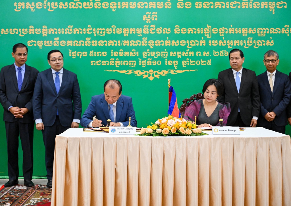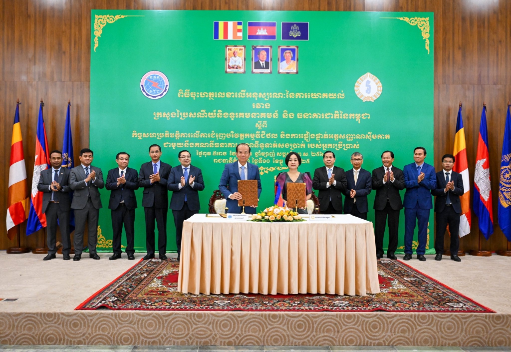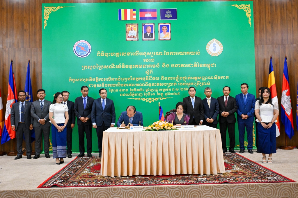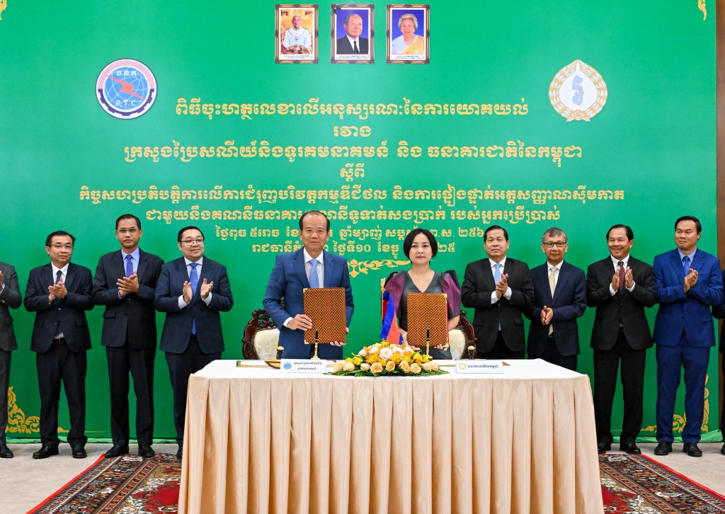 The National Bank of Cambodia (NBC) and the Ministry of Posts and Telecommunications (MPTC) signed a Memorandum of Understanding (MoU) on Cooperation in Promoting Digital Transformation and Verification of SIM Card Identities with Users’ Bank Accounts/Payment Accounts under the high presidency of H.E. Dr. Chea Serey, Governor of the National Bank of Cambodia, and H.E. Chea Vandeth, Minister of Posts and Telecommunications, on December 10, 2025 at the National Bank of Cambodia.