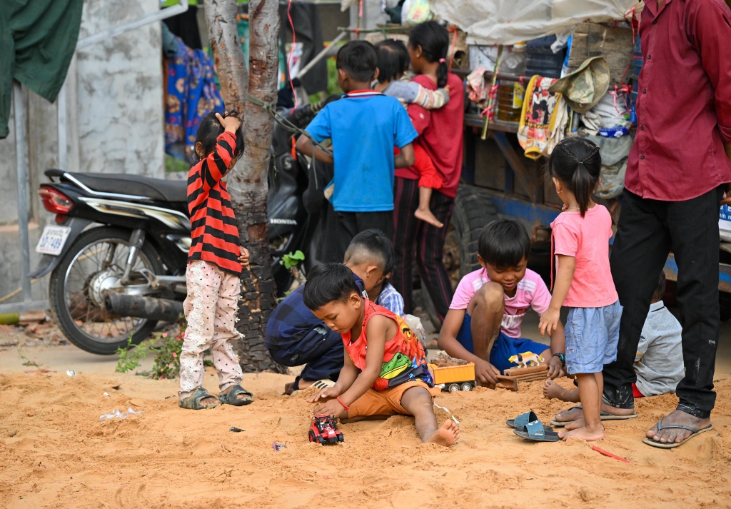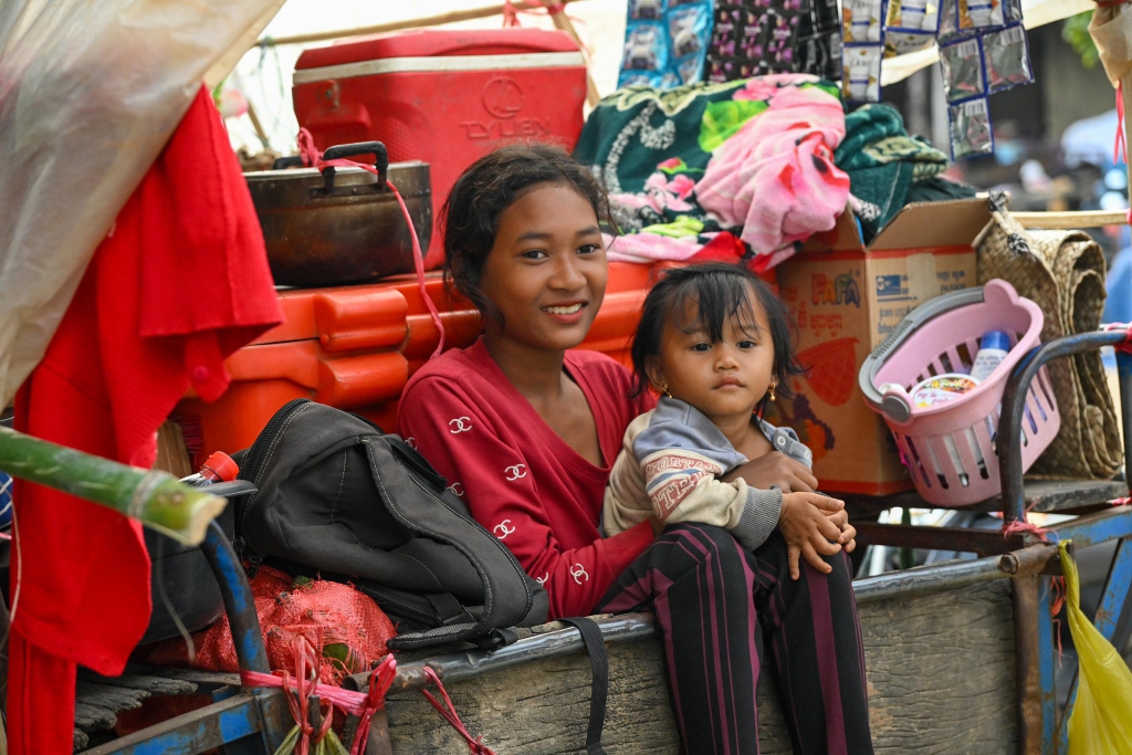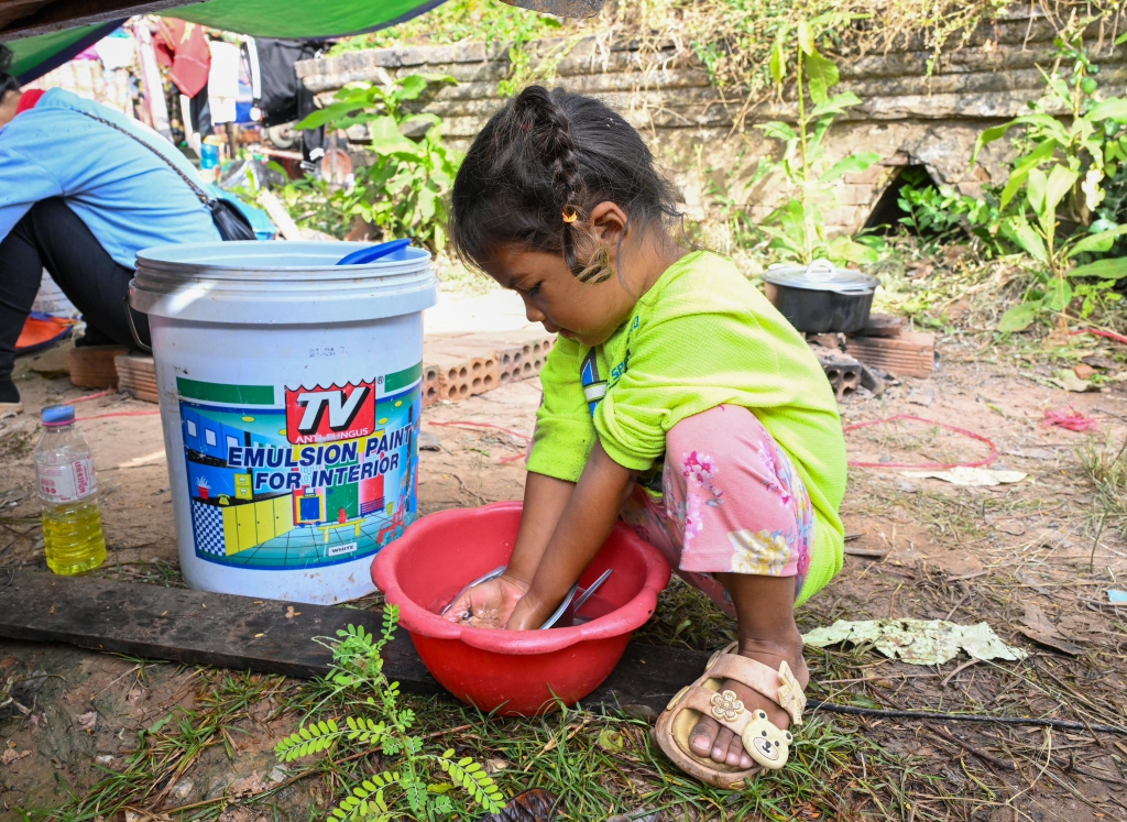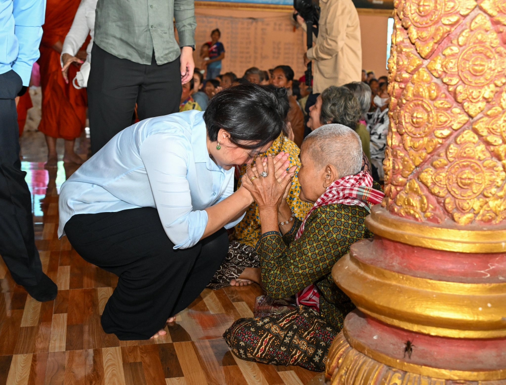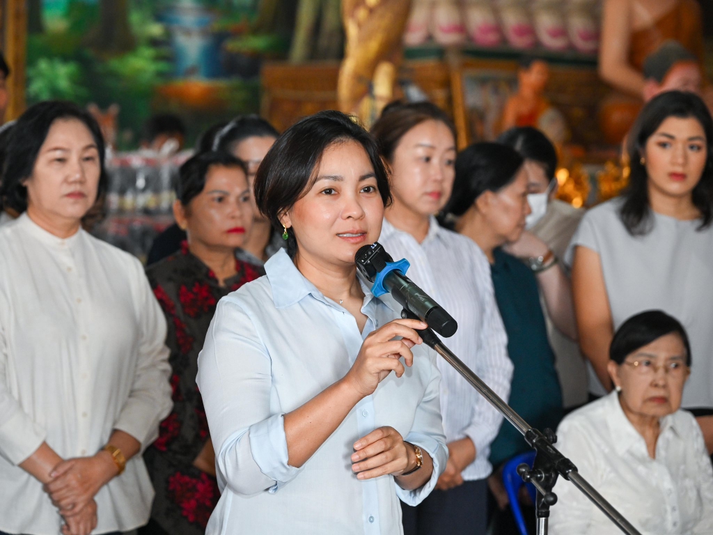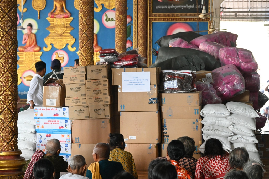 H.E. Dr. Chea Serey, Governor of the National Bank of Cambodia, led officials and staff of the National Bank of Cambodia on a visit to convey sympathy and deliver food supplies and various essential items to displaced people at a shelter site