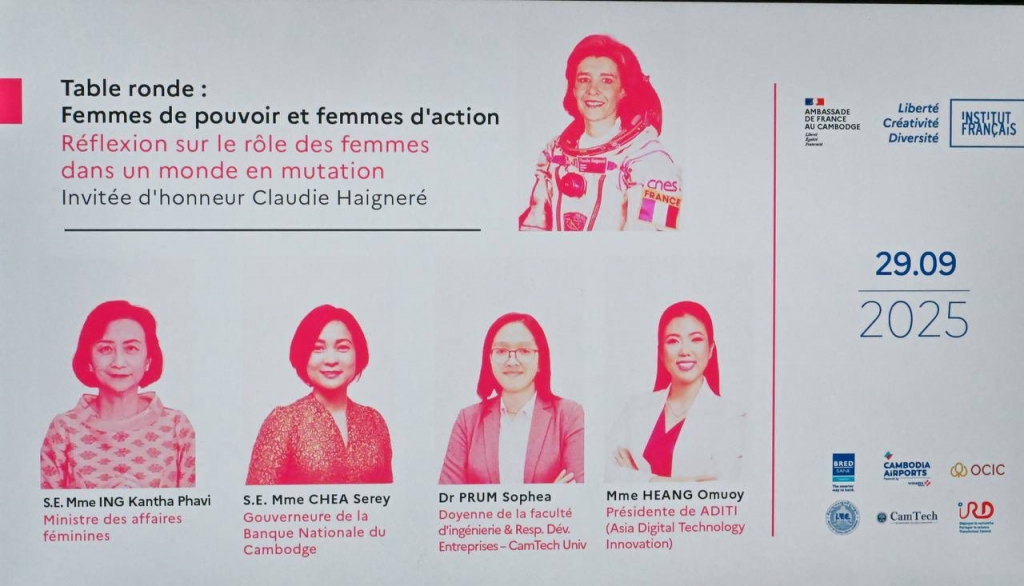 លោកជំទាវបណ្ឌិត ជា សិរី ទេសាភិបាល ធនាគារជាតិនៃកម្ពុជា បានអញ្ជើញចូលរួមជាវាគ្មិនក្នុងកិច្ចពិភាក្សាតុមូលក្រោមប្រធានបទ៖“ស្ត្រីដ៏មានឥទ្ធិពល និងស្ត្រីដ៏សកម្ម៖ ការឆ្លុះបញ្ចាំងពីតួនាទីរបស់ស្ត្រីក្នុងពិភពលោកដែលកំពុងផ្លាស់ប្តូរ” នាថ្ងៃទី២៩ ខែកញ្ញា ឆ្នាំ២០២៥ នៅវិទ្យាស្ថានបារាំងនៅកម្ពុជា។